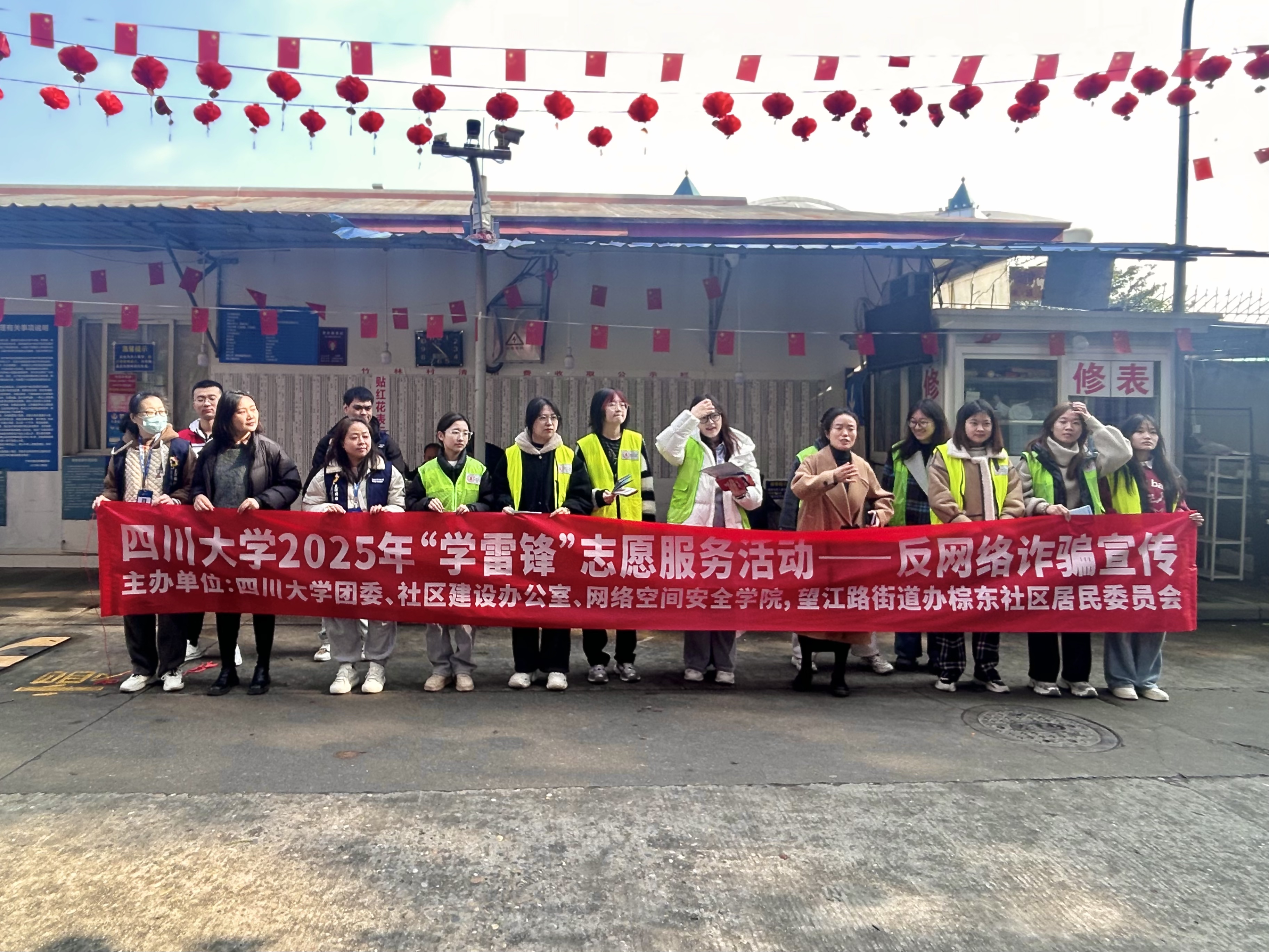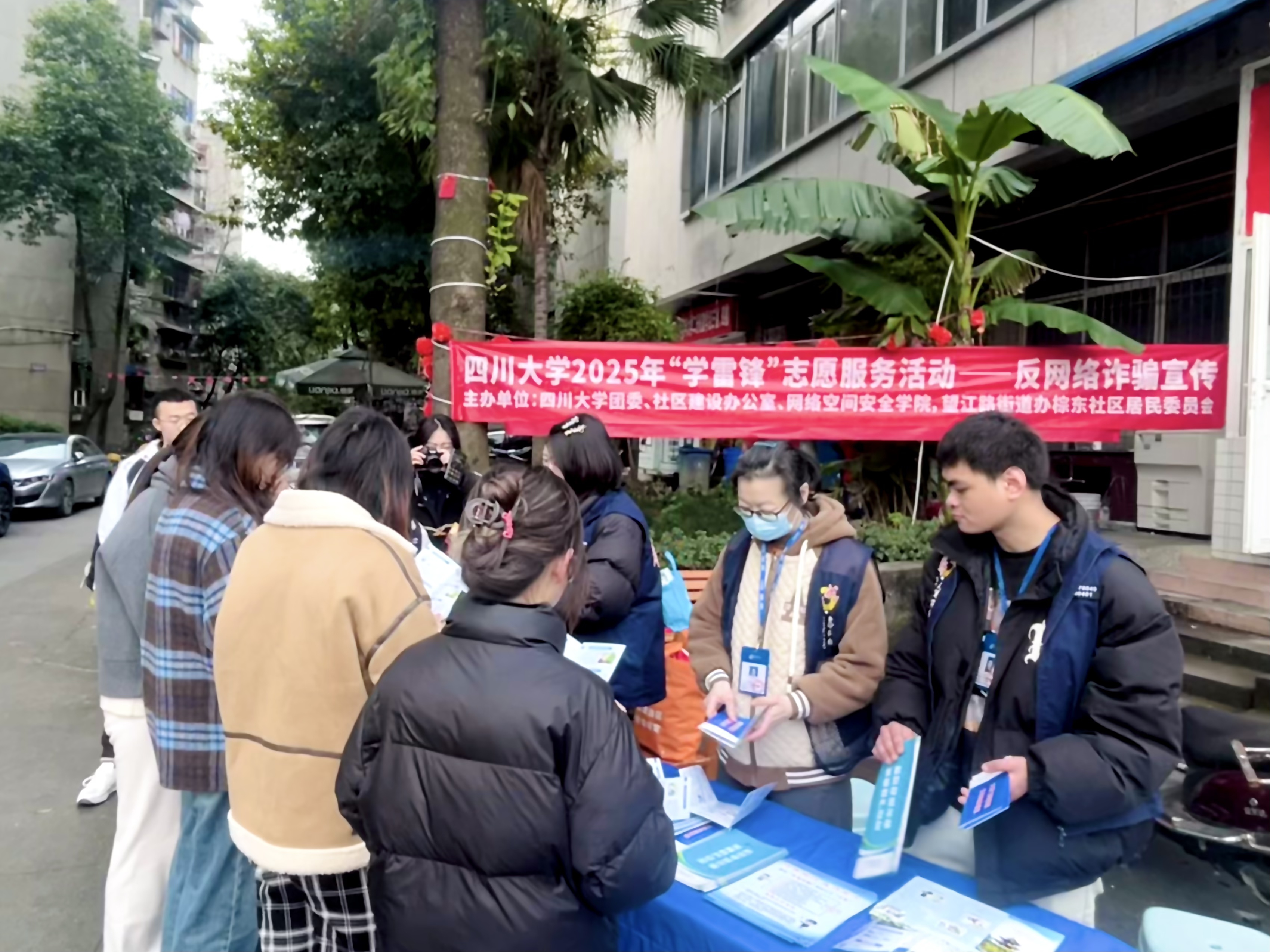 为弘扬新时代雷锋精神,同时针对近年来诈骗手段日益更新,群众易受骗等问题,2025年3月2日,四川大学社区建设办公室、校团委、网络空间安全学院联合望江路街道办事处棕东社区,共同走进竹林村小区,开展“学雷锋”志愿服务活动—反网络诈骗宣传。活动通过多元化的宣传形式,为居民筑牢网络安全防线。