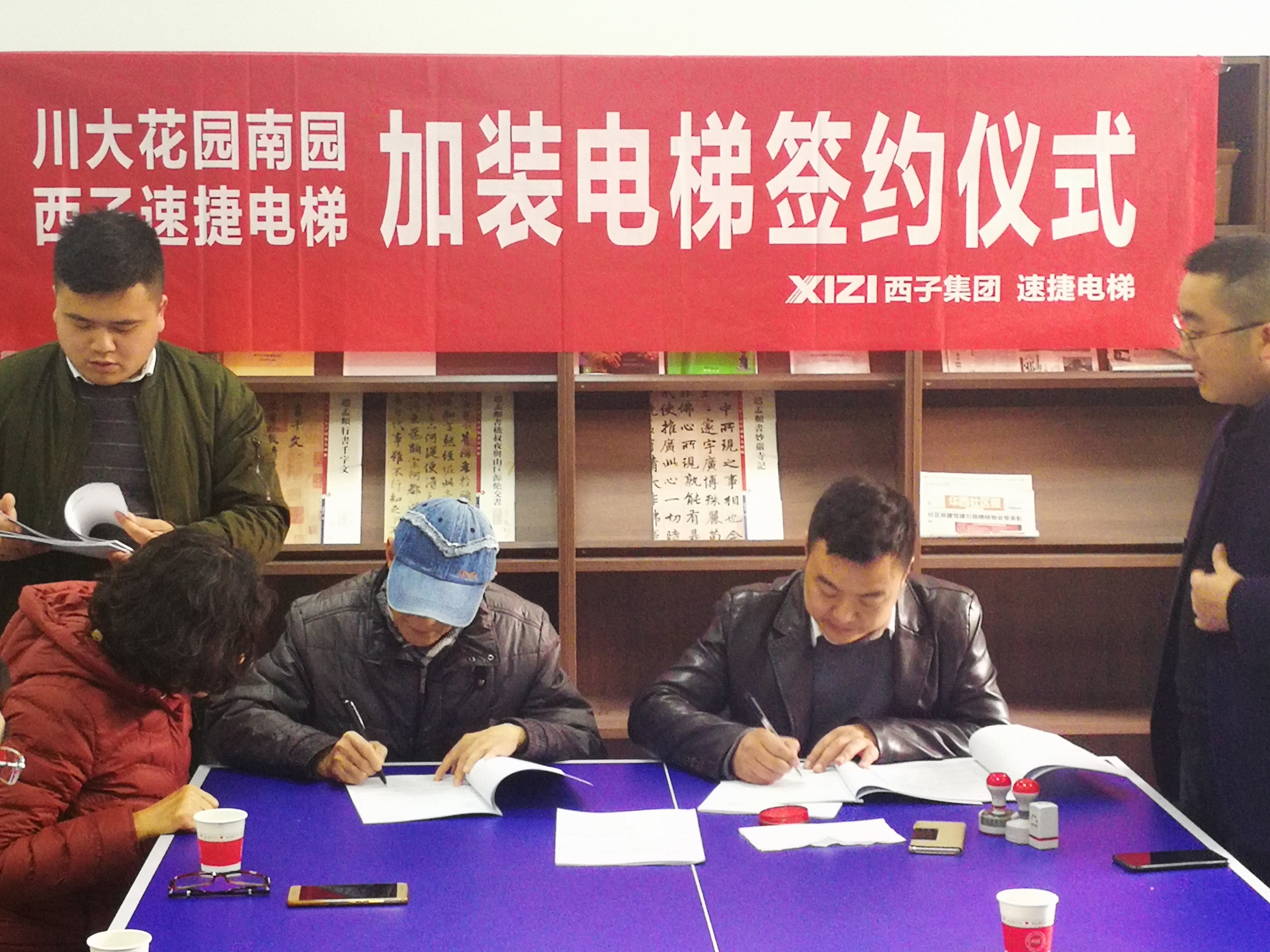 最后,川大花园南园92单元业主代表与速捷电梯公司签订了增设电梯的相关合同。