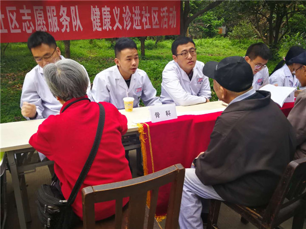 本次志愿活动聚集了来自临床医学院“博士快车” 医疗服务实践团的骨科、皮肤科、感染科、普外科、心内科、风湿免疫科、呼吸内科、老年医学等科室的医生。活动还未开始,现场就来了不少前来咨询的居民,医生们根据居民们带来的检查报告、诊疗单等,耐心解答其疑问并给出相关建议。