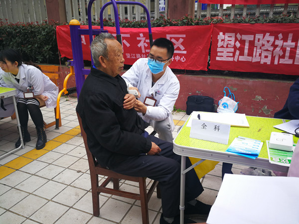 川大家园社区志愿服务队的志愿者们提前到场进行现场布置,在活动过程中,及时引导前来咨询的居民群众;来自望江路社区卫生服务中心、双楠医院不同科室的医生们热情接待了前来咨询问诊的小区居民们,现场进行血压、血糖免费测量,并耐心解答他们的各项疑问并给出相关建议。