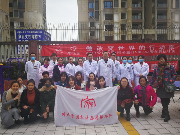 2017年11月29日上午,四川大学社区建设办公室组织川大家园社区志愿服务队联合望江路社区卫生服务中心、双楠医院在华西新村•十四宿舍小区开展“健康进社区”系列志愿服务活动。