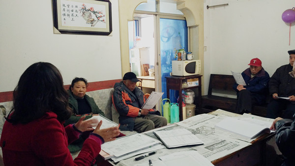 图为 大家正在讨论如何改进小区管理工作