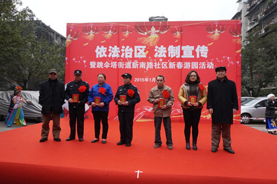 1月29日下午14:00,由跳伞塔街道党委及新南路社区居民委员会主办,大学路12号小区业主委员会和物业服务站协办的“依法治区,法制宣传——暨跳伞塔街道新南路社区新春游园活动”在大学路12号小区内拉开帷幕。