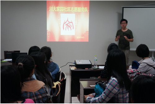 接着,社区建设办公室工作人员以“聚力青春,志愿社区”为主题培训内容正式开始。培训内容涉及到社区的概况以及如何提高个人自我认识。培训过程中还通过一个小游戏让大家体验了一个团队的建设。培训会最后,介绍了今后开展活动如何进行活动方案设计。