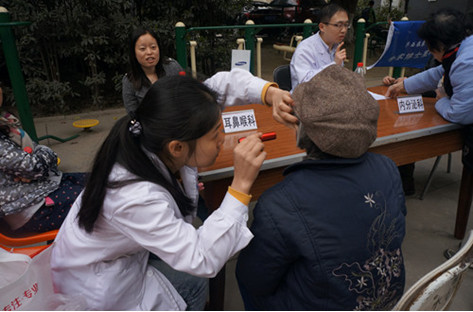 活动在社区志愿者的引导下有序进行,来自华西临床医学院包括耳鼻喉科、骨科、内分泌科、妇科、护理、呼吸科、心内科七个不同科室的专家、博士组成的专家博士服务团在两个小时的义诊时间里,对前来咨询、看诊的居民提出的问题给予了耐心的解答,并提出了合理的建议。